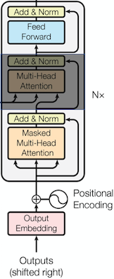 때문에 기존 transformer에서 encdoder의 출력과 decoder의 출력을 attention해주는 두번째 multi-head-attention 부분을 제거해야 한다.