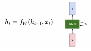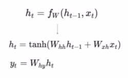 - 위의 변수들에 대하여 h_t = f_W(h_(t-1), x_t)의 함수를 통해 매 타임스텝마다 hidden state를 다시 구해준다.