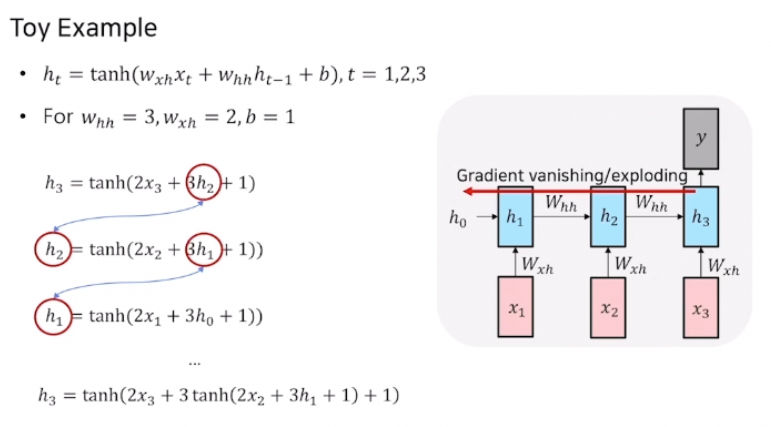- gradient가 전파되면서 소실 혹은 증폭되며 멀리까지 학습 정보를 잘 전달하지 못하는 Long-Term-Dependency가 발생하기 때문.